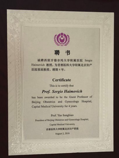 - בין השנים 1997–1998 היה חיימוביץ חבר מועצת המנהלים של החברה הספרדית לגיניקולוגיה.